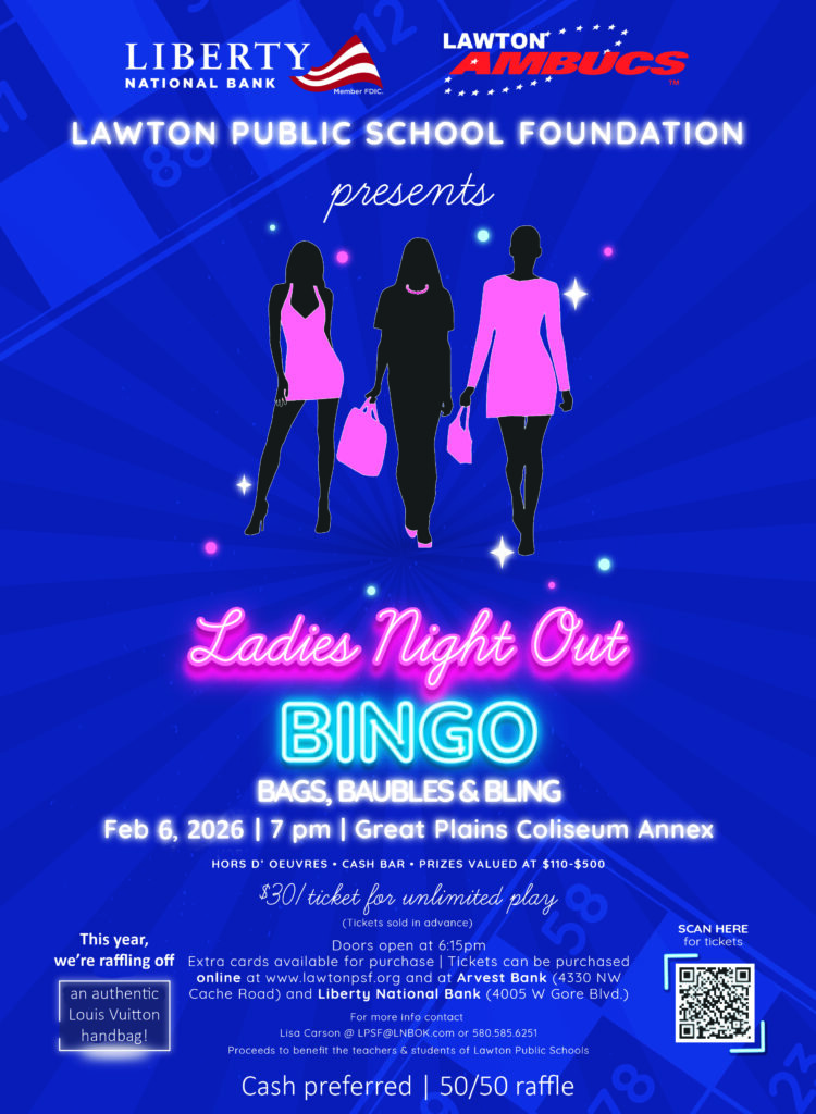 Join us for a great event benefitting the students and teachers of Lawton Public Schools! This wonderful ladies night out will include fantastic company, plenty of hors d’oeuvres, and a cash bar. Join us and test your luck to win fabulous designer and luxury prizes!